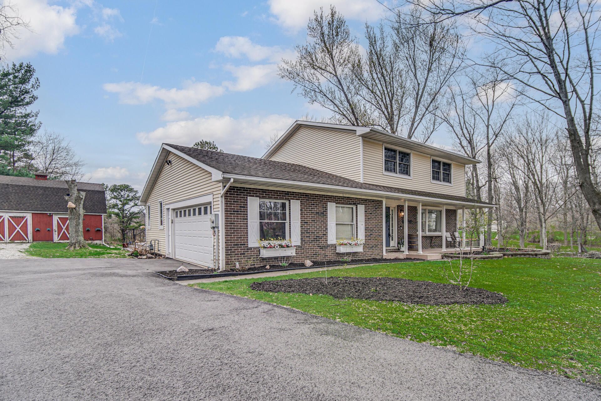Attention outdoor enthusiasts! Check out this FULLY RENOVATED 2-story, immersed in nature on 1.79 wooded acres with its own barn! All the perks that come with the serenity of country living, yet you're still just 15 minutes from downtown Valpo! Enjoy your morning coffee on the covered front porch before stepping into the welcoming entryway/open-concept living room with bay window! The entire home is airy & bright with lots of natural light + gorgeous luxury vinyl plank (LVP) flooring flowing throughout! The STUNNING eat-in galley kitchen features a charming dining area as well as all stainless appliances, quartz (Cambria) countertops & a custom tile backsplash before opening up to the family room (could serve as a formal dining room) with built-in coffee bar, electric fireplace & walk-out access to the deck/backyard; the perfect spot to get lost in a good book! A cute half bath rounds out your main level, while the upstairs boasts four spacious bedrooms (including master with adorable bath en suite), plus a remodeled full guest bath! Your FINISHED basement affords plenty of extra living & entertaining space, including a large rec room (could make for a great home theater or playroom), exercise room, home office, convenient full bathroom (soaking tub) AND unfinished utility/laundry room for added storage space! You'll love hosting friends for cookouts this summer in your private, wooded backyard retreat. Sprawling 276 sqft composite deck and 34'x20' BARN to house all your toys, with a loft, workshop, air filtration system & authentic Nashua wood burning stove, making for a low-cost heat source where you can hang out all year round! Attached 2.5-car garage with another workshop area, LOW taxes, NO HOA, terrific Union Twp schools! Whether you're looking to start a small hobby farm or just a little escape, consider upgrading your subdivision for more wildlife with this is truly unique property in a stellar location where you'll love creating new memories!